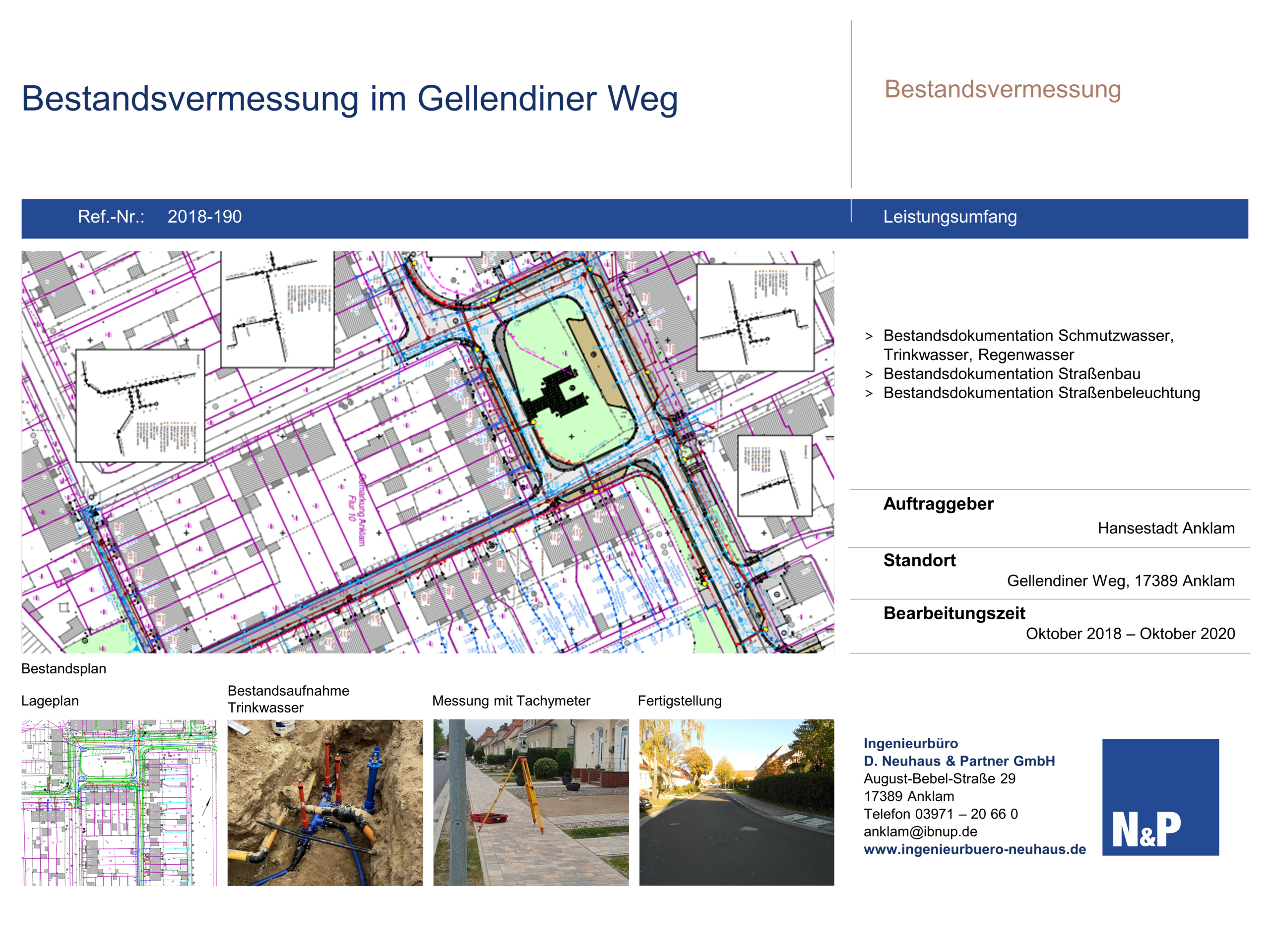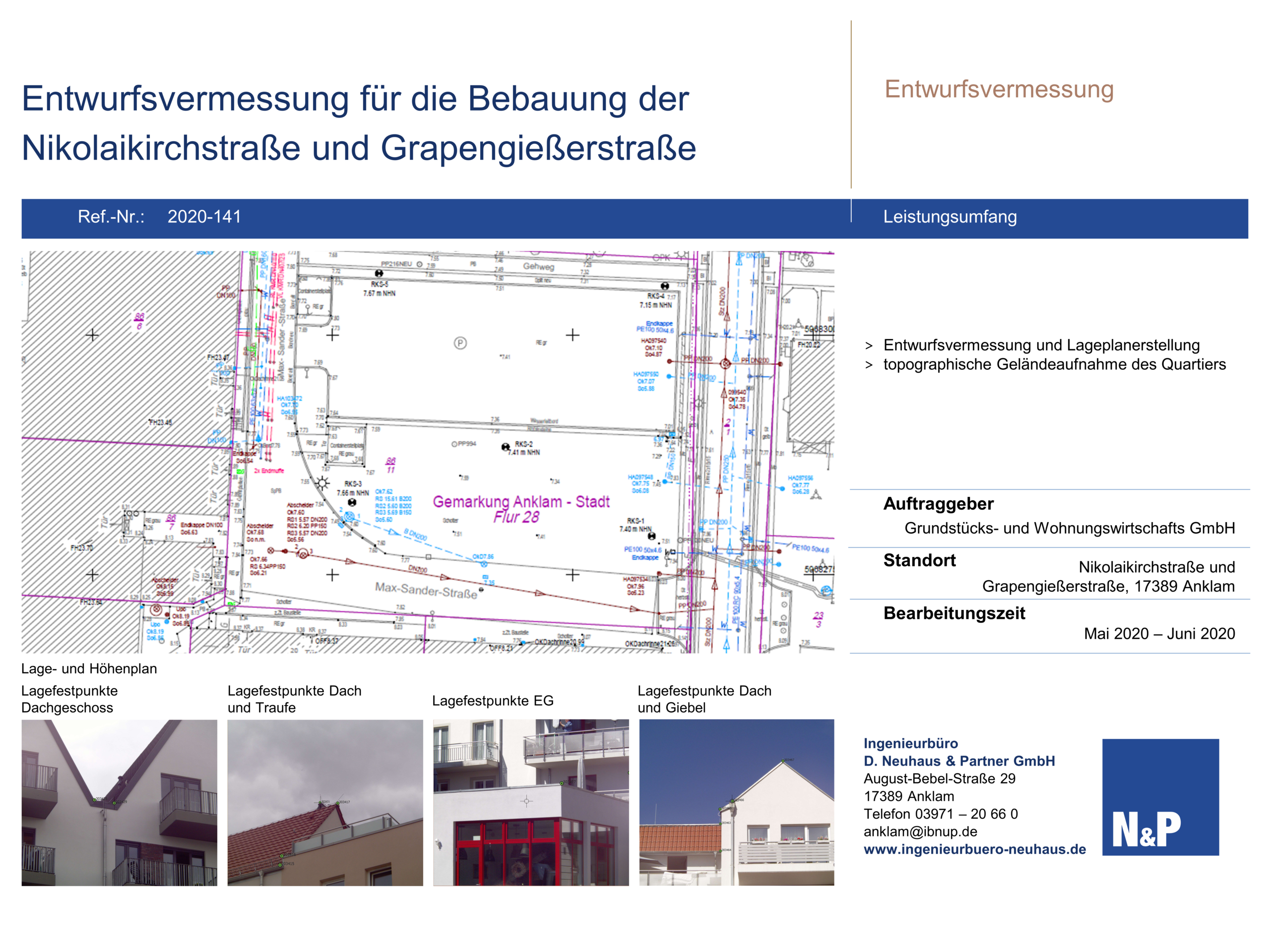 Durch unsere Fachabteilung „Vermessung“ werden Leistungen der planungsbegleitenden Vermessung sowie der Bauvermessung im Außen- und Innendienst erbracht. Dabei arbeiten wir mit modernen Totalstationen und Digitalnivellieren, auch 3D-Laserscanning sowie die projektbezogene Aufbereitung der zugehörigen Daten erfolgt im eigenen Haus.